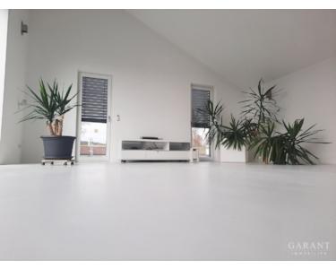 - Granit - Und weißer Epoxidharzboden sowie Steinteppich im Bad