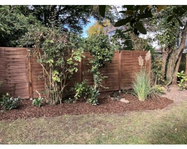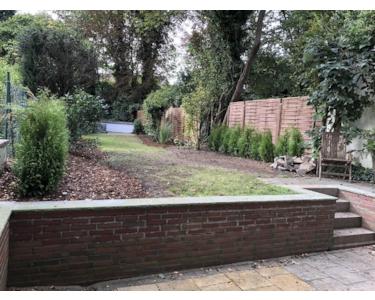 Der Garten wurde 2024 grundlegend neu gestaltet, um eine regelmäßige Pflege zu erleichtern. Die abschließende Neuanlage der Grün-/ Rasenfläche steht noch aus.