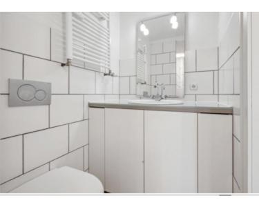 Die Hochparterre ist mit weißen Bodenfliesen in Diele, Flur, Küche und Bad ausgestattet. Die Zimmertüren sind Weiß.