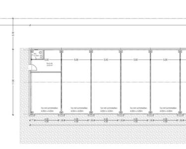 Die Lagerhalle hat eine Grundfläche von 11m x 5m und verfügt somit insgesamt über eine Lagerfläche von insgesamt 55qm.