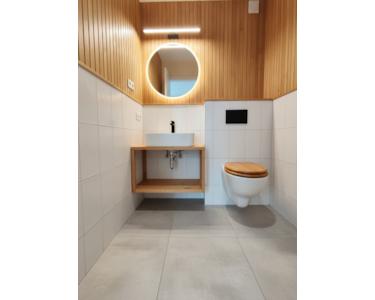 Praktischerweise ist das Bad vom WC getrennt, so dass hier eine nötige Privatsphäre geschaffen ist. Sollte Ihnen das nicht gefallen verbinden Sie unter Umständen ggf. das Bad mit dem WC zu einer größeren Wohlfühloase.