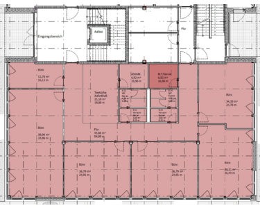Die Mieteinheit bietet sechs Büroräume, eine Teeküche und einen Aufenthaltsbereich, sowie einen Abstellraum und einen klimatisierten und vorgerüsteten ETL/EDV-Raum.