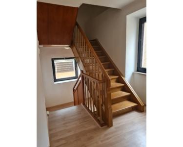 Die einzelnen Geschosse sind durch Flure über eine geschlossene Holztreppe miteinander verbunden. Die Aufteilung bietet auch einer Familie mit Kindern oder Eltern ausreichend Platz zum angenehmen Wohnen und Wohlfühlen.