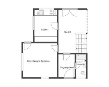 Die Küche ist funktional gestaltet und bietet ausreichend Platz für kulinarische Kreationen. Direkt angrenzend befindet sich der Essbereich, der durch seine Helligkeit besticht und ideal für gesellige Runden ist. Ein Gäste-WC mit Dusche im Erdgeschoss sowie ein Schlafzimmer/Büro/Gastzimmer nebenan sorgen für zusätzlichen Wohn-Komfort.