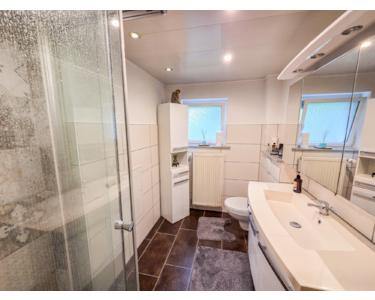 Das Haus verfügt über zwei abgeschlossene Wohneinheiten, die jeweils mit einer Einbauküche, einem Balkon sowie separatem Zugang ausgestattet sind. Eine große Terrasse im Gartenbereich lädt zum Entspannen im Freien ein. Zwei Garagen bieten zusätzlichen Komfort.