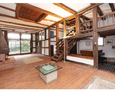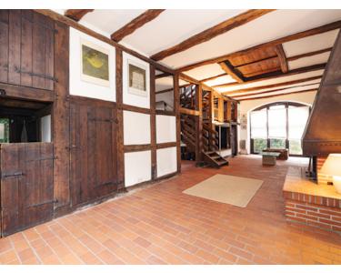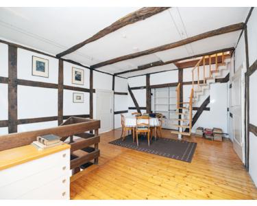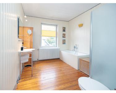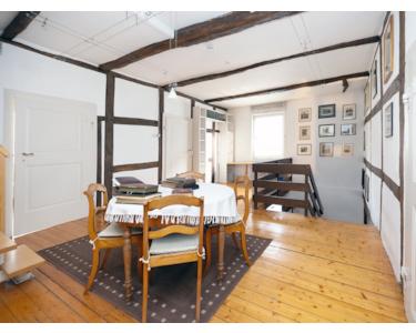 Der rechte Teil des Hauses wurde zu einem warmen Wohnbereich mit etwa 154 m² ausgebaut. Herzstück ist die beeindruckende Quer-Deele mit über vier Metern Deckenhöhe, massiven Eichenbalken, großen Fensterelementen und erhaltenem Fachwerk – ein Raum voller Geschichte, der sofort begeistert. Darüber hinaus bietet das Dachgeschoss weitere ausgebaute Nutzfläche. Beide Gebäudeteile können auf Wunsch wieder miteinander verbunden werden.