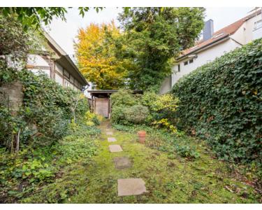 Durch eine große Schiebetür im Wohnbereich gelangt man in den verwunschenen Garten, der sich trotz Innenstadtlage unerwartet ruhig und geschützt zeigt. Ein Carport mit elektrischem Rolltor sowie zusätzlichem Stauraum ist über eine Seitenstraße erreichbar, vier weitere Stellplätze befinden sich vor dem Haus.