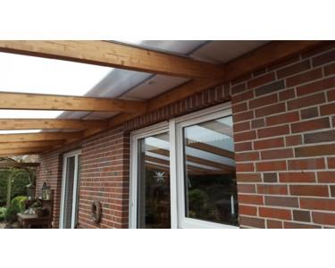 Der Dachüberstand wurde vor knapp 10 Jahren in Kunststoff erneuert. Lässt sich super mit einem Hochdruckreiniger reinigen.