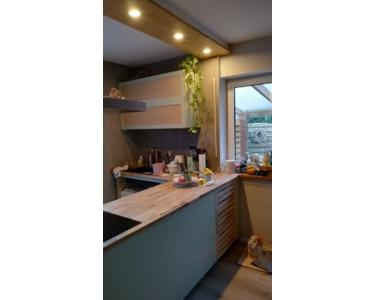 Beim angegebenen Kaufpreis ist die Küche mit enthalten. Diese ist aus Multiplex, sowie Eichenholz. Wenn die Küche nicht mit übernommen werden soll oder der Kaufpreis niedriger liegt, lässt sich sicherlich eine Einigung finden.