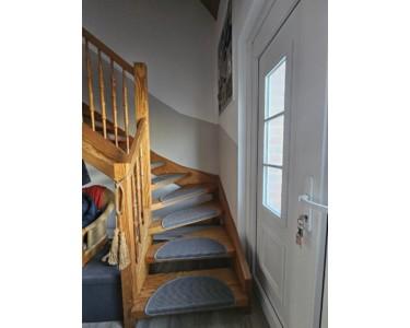 Die Böden sind unten komplett mit Vinyl verlegt, welches vollflächig verklebt wurde. Das kleine Gästebad unten ist komplett renoviert worden. Ein Wandhängendes Klo wurde montiert.
