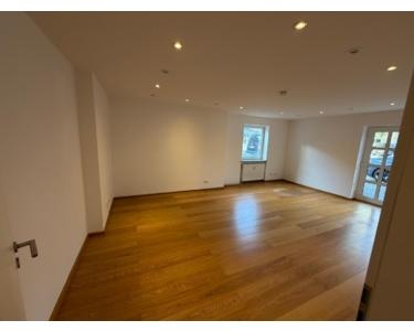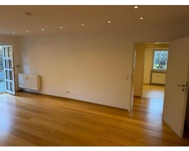 Zum Verkauf steht eine großzügige und sofort verfügbare Wohnung mit einer Wohn-Nutzfläche von insgesamt rund 120 m². Die Wohnung im EG misst rund 81 m² und ist optimal geschnitten. Sie besteht aus einem Flur, einem renovierten und sehr ansprechenden Bad mit separatem Gäste-WC, großem Wohn-Essbereich mit Außenzugang, einer Küche sowie einem Schlafzimmer. Das Kellerabteil mit rund 40 m² Nutzfläche im Sondereigentum erreichen Sie direkt aus der Wohnung über eine innenliegende Treppe.