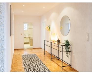 Die Wohnung hat einen separaten Eingang auf der oberen Etage und einen zweiten Zugang in der unteren Etage. Die Ausstattung ist exklusiv und zeitlos modern. Mit ihren 5 Zimmern - davon 4 Schlafzimmer - bietet sie auch für Familien ausreichend Wohnfläche zum wohlfühlen.