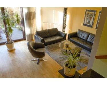 Durch den Windfang erreichen Sie den Essbereich im Hochparterre, mit direktem Zugang zur hochmodernen Küche. Ein paar Stufen nach unten und man gelangt in den Wohnbereich, um gemütlich zu lesen, Fernsehen zu schauen oder den Blick in den uneinsehbaren Garten schweifen zu lassen.