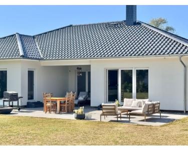 HORN IMMOBILIEN ++ Winkelbungalow 5 km bis Neubrandenburg, Baujahr 2022, Doppelgarage + Carport