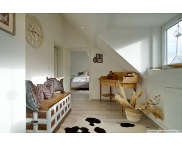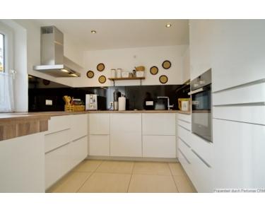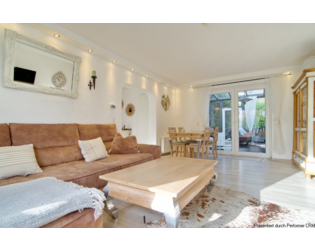 High quality fittings and furnishings throughout, in a harmonious colour scheme in light natural tones. On the ground floor you will find the fully fitted kitchen, which is equipped with an induction hob, oven and dishwasher (all Siemens) and a side-by-side fridge-freezer with water cooler. The living room is furnished with a cosy corner sofa, large smart TV (with satellite reception) and a dining table to seat four. Access to the conservatory with seating and also to the garden. Bathroom with walk-in shower, bath, heated towel rail and window. Bathroom suite installed only a few years ago. Separate guest WC. Upstairs is the main bedroom, furnished with a double divan bed and spacious wardrobe, a compact landing with working area and an additional, smaller bedroom featuring a pull-out bed, desk and wardrobe. Washing machine and dryer in the cellar.