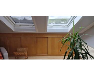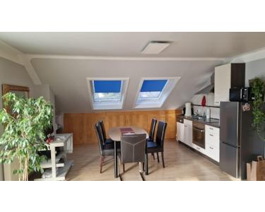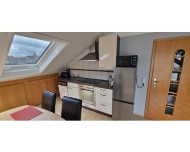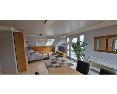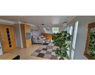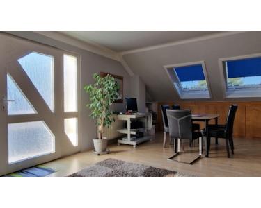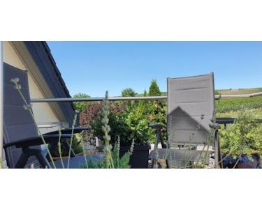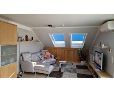 Wohnen Sie in einer hellen, gemütlich eingerichteten DG-Wohnung in Bodenheim mit tollem Blick ins Grüne. Die komplett ausgestattete Wohnung verfügt über eine moderne Farbauswahl und ist hell und freundlich. Sie gelangen zu der Wohnung über eine Wendeltreppe und haben von dort Zugang zu einer kleinen Terrasse und dem Wohnungseingang.