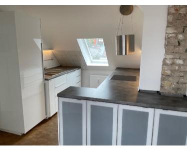 Perfekt für Singles und Paare: 2 Zimmer mit großer, fantastischer Dachterrasse, moderner Küche und Vollbad sowie Flur: