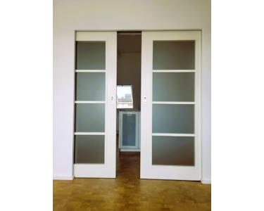- moderne Küche mit hochwertigen Elektrogeräten und Hue Light-Strips entweder offen zum Wohn- und Esszimmer oder abgetrennt durch große, in der Wand verdeckt laufende Schiebetür