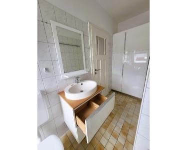 - Badezimmer mit Toilette, Waschtisch, Badewanne inklusive Duschabtrennung, genügend Platz für die Waschmaschine und Einbauschrank für Staubsauger, Reinungsmittel, Handtücher & Co.