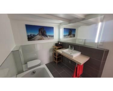 - Modernisiertes Bad (WC, Badewanne, Dusche) im Dachgeschoss (Komplettsanierung 2017)