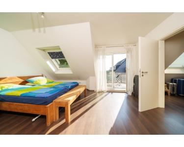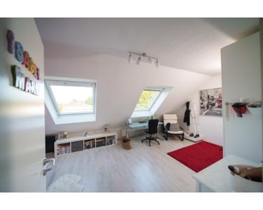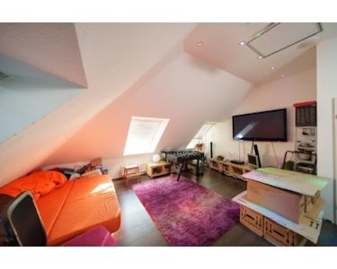 Im weiteren Verlauf der Wendeltreppe wird das Dachgeschoss erreicht. Das Dachgeschoss verfügt über ein separates Duschbad und einem großen, momentan als Home-Office genutzten Raum, der durch vier große Dachflächenfenster lichtdurchflutet wird.
