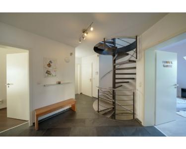 - Die Bodenflächen des 1. OG und die Flure der beiden anderen Etagen sind mit strapazierfähigem Naturschiefer (anthrazit) gefliest