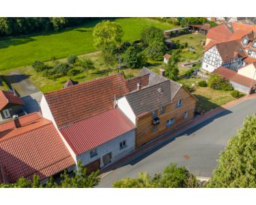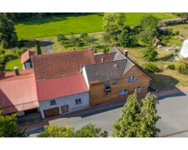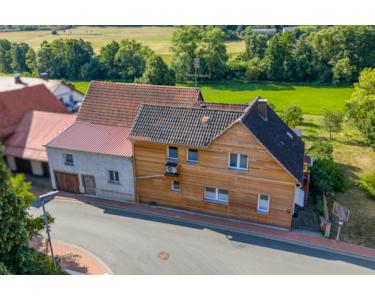 Lohra-Weipoltshausen | Wohnhaus mit Anbauten und Keller | Baujahr Gebäude circa 1900, diverse Erweiterungen | ca. 875 m² Grund | ca. 265 m² Wohnfläche | ca. 217 m² Nutzfläche | Erd- und Obergeschoss mit mehreren Wohn-/Schlafräumen, Küche, 2 Bädern | Sauna | Infrarotkabine | Balkon | Garage | Werkstatt | Garten mit Hütte | Kaminofen | 2 PV-Anlagen auch zum Einspeisen mit Stromspeicher | Klimasplitgerät | teilweise Fußbodenheizung | 99.000 € Mindestgebotspreis | provisionsfrei (#19238)
