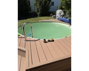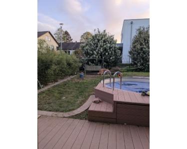 Im Erdgeschoss befindet sich ein helles und großes Wohn- und Esszimmer mit direktem Zugang zur Terrasse und zum Garten. Zusätzlich sorgt ein Stahlwandrundpool im Garten für sommerliches Badevergnügen. Im Erdgeschoss befindet sich zudem eine helle moderne Küche sowie ein Gäste-WC.