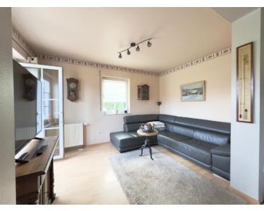 Die Wohnfläche von ca. 100 m² verteilt sich auf funktionale helle Räume. Zur Verfügung stehen im Erdgeschoss ein großzügiger Wohn-/Essbereich mit Zugang zur Terrasse, eine gepflegte Einbauküche, sowie ein Gäste-WC.