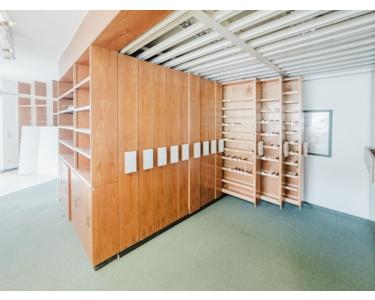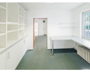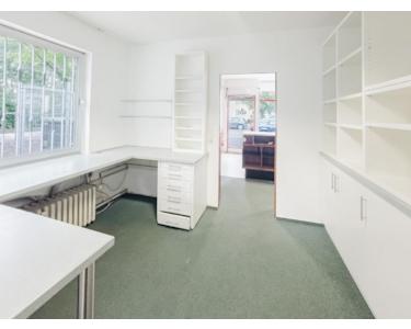 Derzeit dienen wertige Apothekerschränke als Raumteiler. Im Zuge einer notwendigen Renovierung/Modernisierung lässt sich der Grundriss sehr flexibel an Ihre individuellen Bedürfnisse anpassen – ideal für Praxen, Agenturen, Studios, Büros oder (Online-)Einzelhandel.