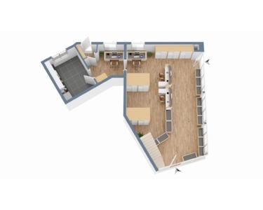 Die rund 115 m² große Fläche im Erdgeschoss überzeugt mit einem hellen, freundlichen Ambiente und einer breiten Glasfront, die für optimale Sichtbarkeit Ihrer Dienstleistung oder Ihres Geschäfts sorgt.