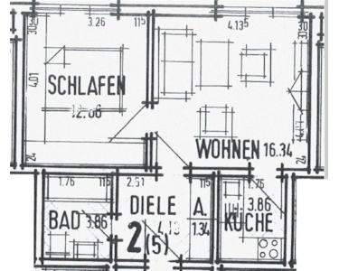 - Raumaufteilung: Wohn- und Esszimmer, Küche, Schlafzimmer, Bad, Diele