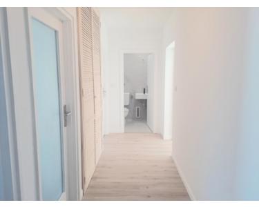 Das Schlafzimmer bietet ausreichend Platz für ein Doppelbett und Stauraum, während das halbe Zimmer ideal als Arbeits- oder Gästezimmer genutzt werden kann.