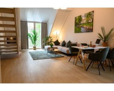 Dieses Apartment auf zwei Ebenen bietet großzügige Raumaufteilung und stilvolle Möblierung. Moderne Innenausstattung, elegante Sitz- und Essbereiche sowie ein gemütlicher Schlafbereich machen es zur perfekten Kombination aus Funktionalität und Komfort. Die voll ausgestattete Küchenzeile ist ideal für Selbstversorger, während Balkon oder Terrasse entspannte Stunden im Freien ermöglichen.