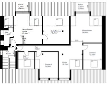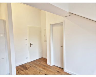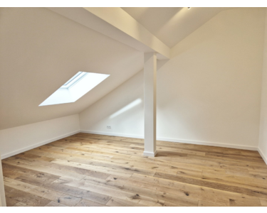 Insgesamt wirkt die Wohnung durch die nicht anrechenbaren Teile der Dachschrägen größer, als es die Quadratmeterangabe vermuten lässt. Direkter Nachbar auf dieser Etage ist lediglich der zukünftige Bewohner der zweiten Dachgeschosswohnung.