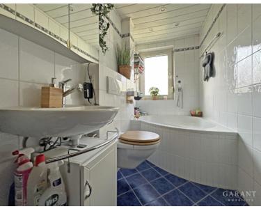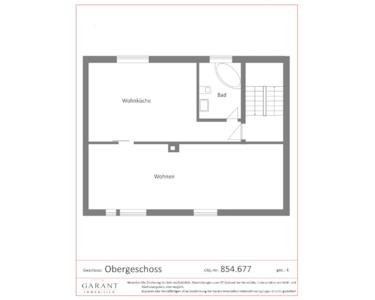Im Obergeschoss befinden sich eine weitere Wohnküche, ein großzügiges Wohnzimmer sowie ein Badezimmer mit Eckbadewanne, Waschbecken und WC.