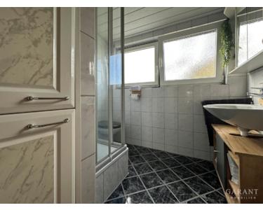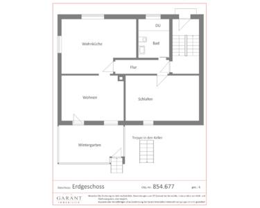 Im Erdgeschoss befindet sich eine Wohnküche mit Zugang zum Wohnzimmer und zum Wintergarten. Von dort gelangt man in den gepflegten Garten mit Freisitz. Außerdem gibt es ein Schlafzimmer und ein Badezimmer mit Schiebetür, Dusche und WC.