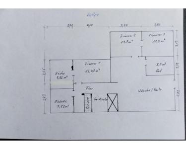 Der Keller mit einer Grundfläche von 117 m² hat eine Geschosshöhe von 2,3 Meter und könnte zu Wohnzwecken genutzt werden.
