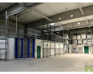Im Obergeschoss der Halle stehen zusätzliche Büroflächen zur Verfügung, die einen direkten Blick auf den Produktionsbereich bieten und einen unmittelbaren Zugang ermöglichen.