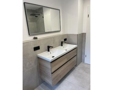 - Moderne Badausstattung mit Großformatfliesen und Armaturen von Hans-Grohe