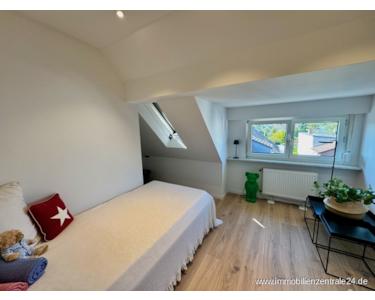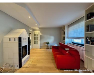 Der Wohnbereich erstreckt sich über das erste Obergeschoss und das Dachgeschoss. Über die einladende Diele im Erdgeschoss gelangt man in das erste Obergeschoss, das mit seiner durchdachten Raumaufteilung und der hellen Atmosphäre besticht. Hier befinden sich das Esszimmer, das gemütliche Kaminzimmer sowie das Wohnzimmer mit direktem Zugang zur großen, sonnigen Dachterrasse – ein idealer Ort zum Entspannen und Genießen. Die separate Küche ist mit einer modernen Einbauküche und hochwertigen Markengeräten ausgestattet. Ein neuwertiges Duschbad aus dem Jahr 2019 rundet diese Etage perfekt ab.