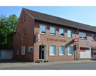 Die straßenseitig mit charmanten Schaufenstern ausgestattete und barrierefrei erreichbare Gewerbefläche im Erdgeschoss dieses gepflegten Wohn- und Geschäftshauses aus dem Jahr 1957 im Zentrum von Lastrup wurde bisher als Apotheke genutzt. Die in der Kirchstraße 3 gelegenen Geschäftsräume wurden zuletzt im Jahr 2009 umgebaut und in den heutigen Zustand versetzt. Auf ca. 143 Quadratmetern befinden sich der ehemalige Verkaufsraum, ein offener Arbeitsbereich, ein Beratungszimmer/Besprechungsraum, das ehemalige Labor, ein großzügiger Aufenthalts- bzw. Sozialraum sowie ein Duschbad mit WC. Die Räume der ehemaligen Apotheke sind noch vollständig eingerichtet. Denkbar erscheint eine Nutzung als Laden, Praxis, Therapieräume, Kanzlei, Büro oder Wohnung (vorherige Abstimmung mit der Bauaufsichtsbehörde erforderlich).