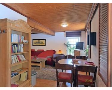### Please note the availability date! Bitte das Verfügbarkeitsdatum beachten! ### möblierte 2-Zimmer-Wohnung in einem historischen Bauernhaus in Jena-Münchenroda; WLAN inklusive; großes Wohnzimmer mit Echtholzböden, Esstisch, Sideboard, TV, Eck-Sofa, Sessel und Küchenzeile; Schlafzimmer mit 1,40m-Bett und Kleiderschrank; ein drittes Zimmer (kein Foto) mit Kleiderschrank und Besucherbett; Bad mit Dusche und WC, Waschmaschine zur Mitnutzung vorhanden; Pauschalmiete 790,00 Euro (bei max. 1 Person); Kaution 1.000,00 Euro; Mindestmietdauer 3 Monate; Pflichtangaben zum Energieausweis: Entfällt, Kulturdenkmal gemäß Thüringer Denkmalschutzgesetz (ThürDSchG)