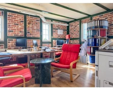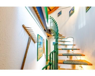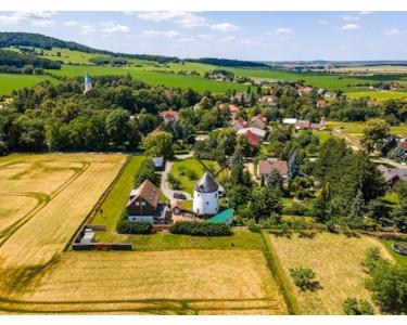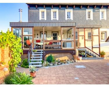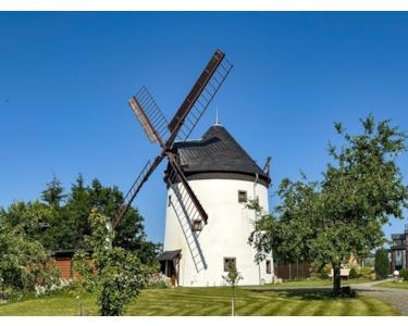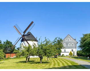 Und schließlich die vielfältigen Nutzungsmöglichkeiten: Das moderne Fachwerkhaus wurde als Mehrfamilienhaus errichtet, die Wohnungen im Souterrain und im Erdgeschoss waren vermietet, die Eigentümer nutzten die beiden oberen Etagen. Nach Anbau des Wintergartens wurde das Haus umgenutzt, das Souterrain diente nicht mehr Wohnzwecken, Erdgeschoss und Obergeschoss einer Familie zum großzügigen Wohnen allein, aus dem Dachgeschoss wurde eine abgeschlossene Gästewohnung. Damit ist es sowohl als Ein- als auch als Zweifamilienhaus nutzbar. Dazu kommt die rekonstruierte Turmwindmühle, die als Ferienhaus diente.