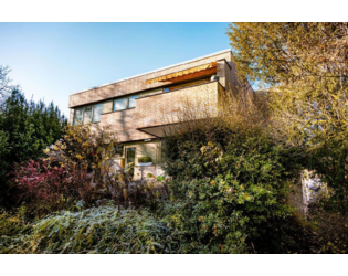 Das im Jahr 1950 errichtete Wohnhaus präsentiert sich als charakteristisches Beispiel der frühen Nachkriegsmoderne. Klare, kubische Baukörper, eine helle Backsteinfassade sowie die funktionale Formensprache des Bauhauses prägen die architektonische Identität des Gebäudes. Großzügige, horizontal ausgerichtete Fensterflächen und ein flach geneigtes Dach verleihen dem Ensemble eine zeitlose, zurückhaltend elegante Ästhetik.