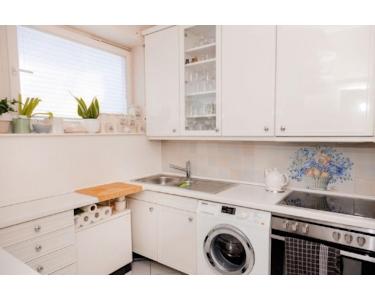 Die separate, voll ausgestattete Miele-Küche bietet ausreichend Platz und ist ideal für den täglichen Gebrauch ausgestattet. Ein stilvolles Marmorbad sowie ein separates WC ergänzen das komfortable Raumangebot.