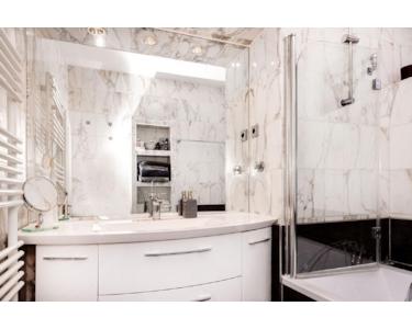 + Großzügiges Marmor-Wannenbad mit Handtuchheizkörper und Fenster (2019)