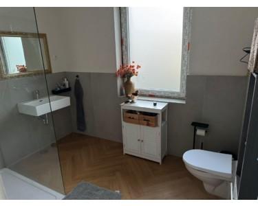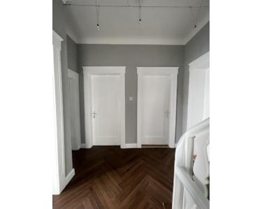 Die historische Stadtvilla wurde in den letzten Monaten umfangreich saniert. Wasser- und Abwasserleitungen wurden 2023 erneuert, zwei moderne Bäder eingerichtet, Fassade und Rückwand frisch instand gesetzt. Originale Eicheböden wurden aufgearbeitet, in einigen Räumen ergänzt durch stilvolles Fischgrätenparkett.
