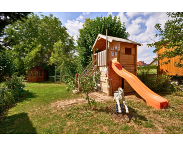 • Einliegerwohnung (46 m²) im Obergeschoss mit Wohn/Schlafbereich (27 m²), Dusche/WC, Küche und Essbereich