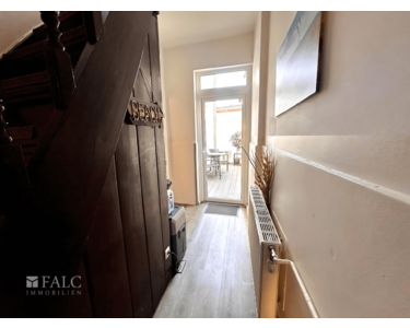 Schon beim Betreten des Hauses spürt man den besonderen Charme der traditionellen Bauweise, verbunden mit den modernen Vorzügen einer umfassenden Sanierung aus dem Jahr 2015. Der Eingangsbereich führt zunächst in einen kleinen Flur, von dem aus sich geradewegs der Zugang zum Innenhof mit Terrasse und praktischem Abstellraum eröffnet – ein geschützter, idyllischer Ort für erholsame Stunden im Freien.